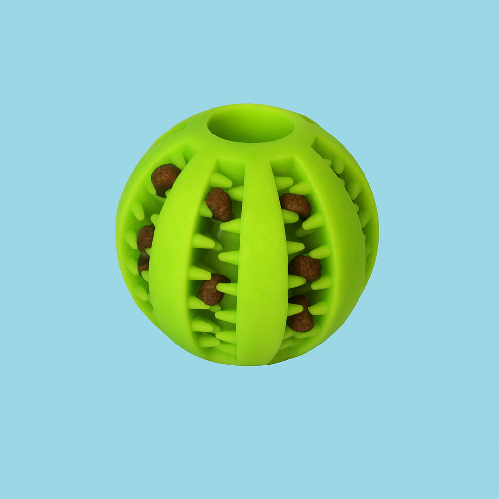 Esta bolinha não é apenas um brinquedo, é uma aliada na saúde bucal do seu melhor amigo. Enquanto ele se diverte tentando pegar os petiscos, as ranhuras especiais da bolinha massageiam suas gengivas e ajudam a remover o tártaro, prevenindo problemas dentários.